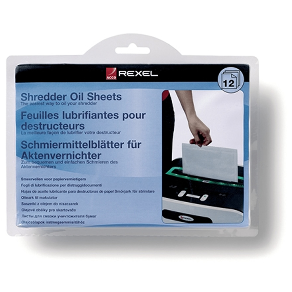 Ref. 2101948 - Rexel Pack de 12 Hojas Lubricantes para Destructoras.