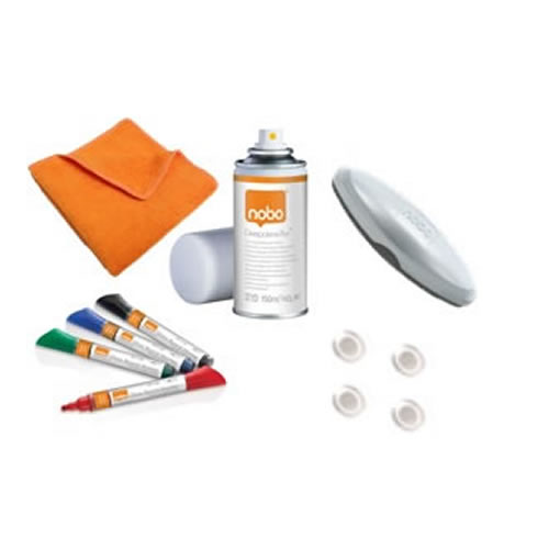 Ref. ES34438861 - Kit inicio NOBO pizarra blanca (contiene 3 rotuladores, un borrador, recargas del borrador y un spray de limpieza de 125 ml) .