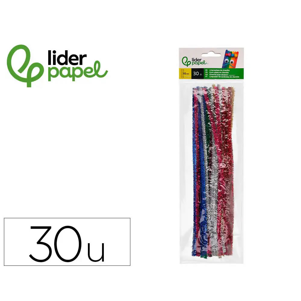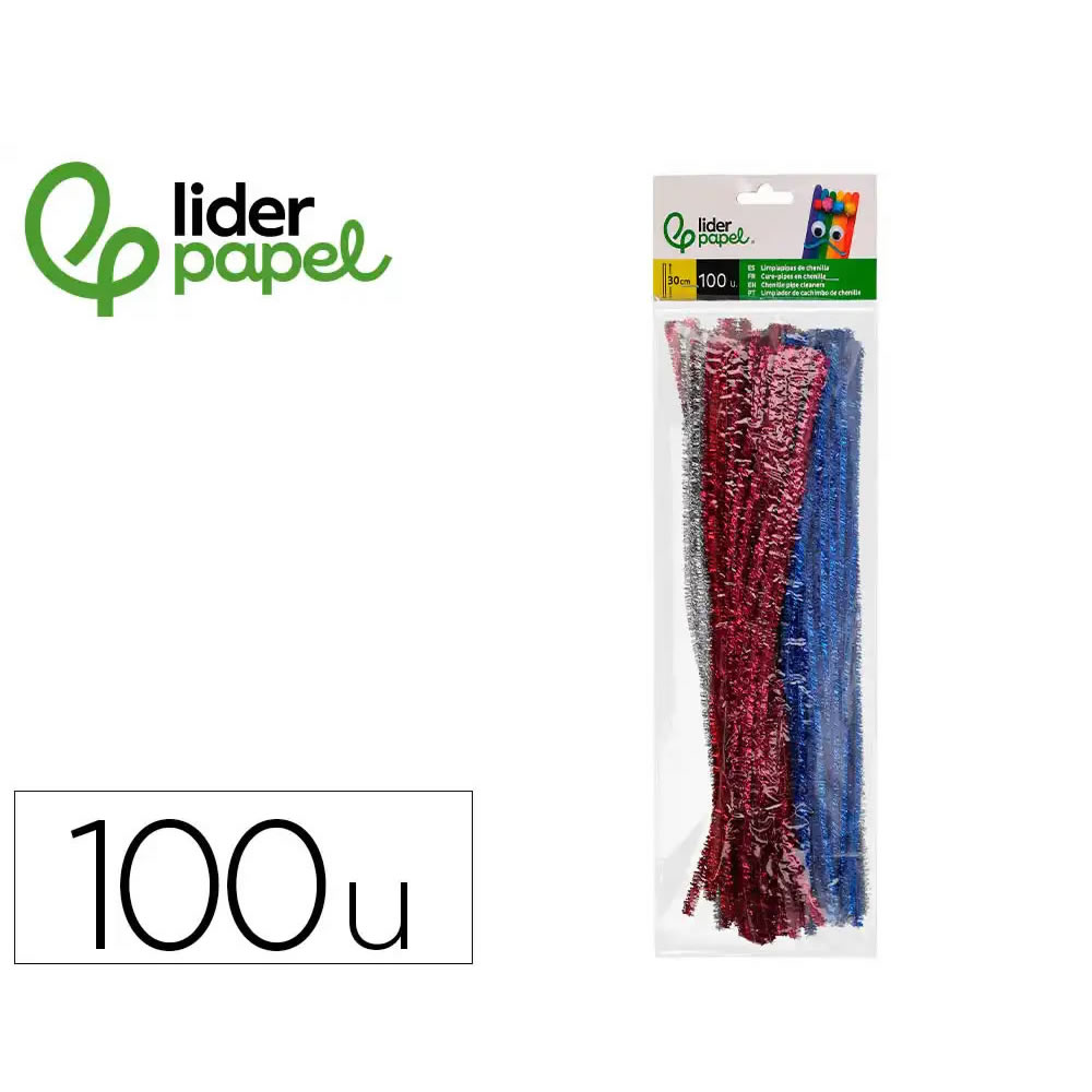 Limpiapipas brillantes para manualidades de colores surtidos: azul, verde, rojo, oro y plata. Medida: Ø 6 mm x 300 mm. Cada bolsa contiene 50 limpiapipas.