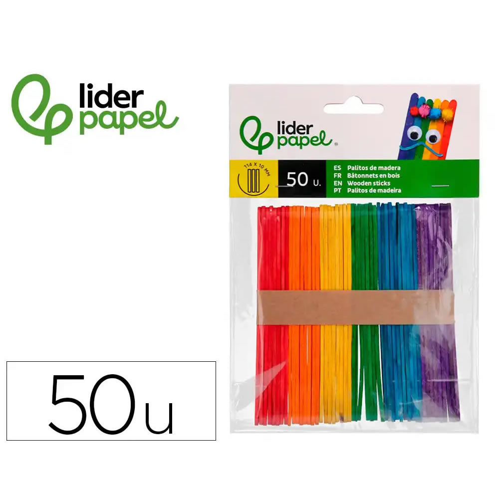 Mini palitos de madera de colores surtidos tamaño 50 x 2 mm. Formato MAXI, ideal para escuelas y talleres. Cada pack contiene 1500 mini palitos de distintos colores: amarillo, naranja, rojo, verde azu...