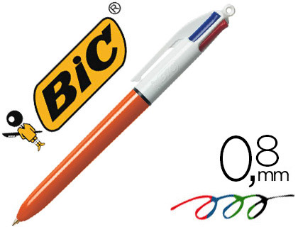Ref. 982867 - Bic 4 Colours Original Fine Boligrafo de Bola Retractil - Punta de 0.8mm - Trazo de 0.36mm - Tinta con Base de Aceite - Cuerpo Natanja / Blanco - 4 Colores.