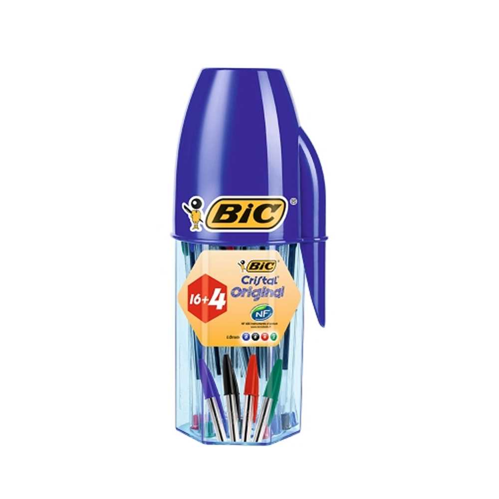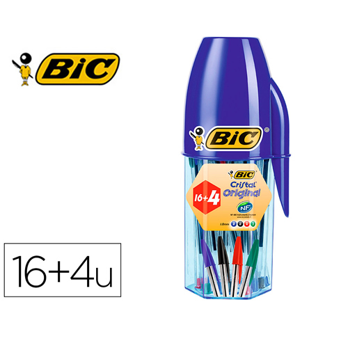 Ref. 929081 - Bic Cristal Original Megatubo con 16+4 Gratis Boligrafos de Bola - Punta redonda de 1mm - Trazo 0.4mm - Tinta con Base de Aceite - Colores Surtidos.
