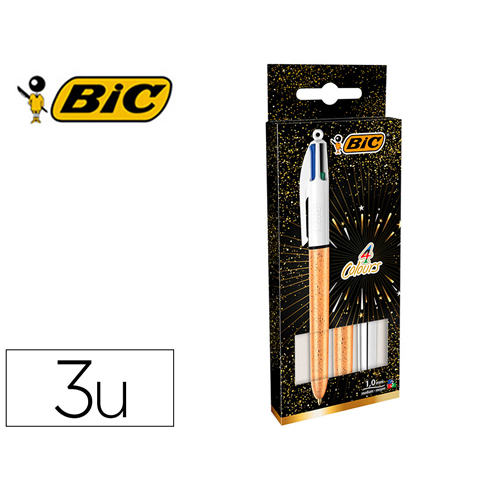 Ref. 5037721 - Bic 4 Colours Decors Pack de 3 Boligrafos de Bola Retractil - Punta Media de 1.0mm - Tinta con Base de Aceite - 4 Colores.
