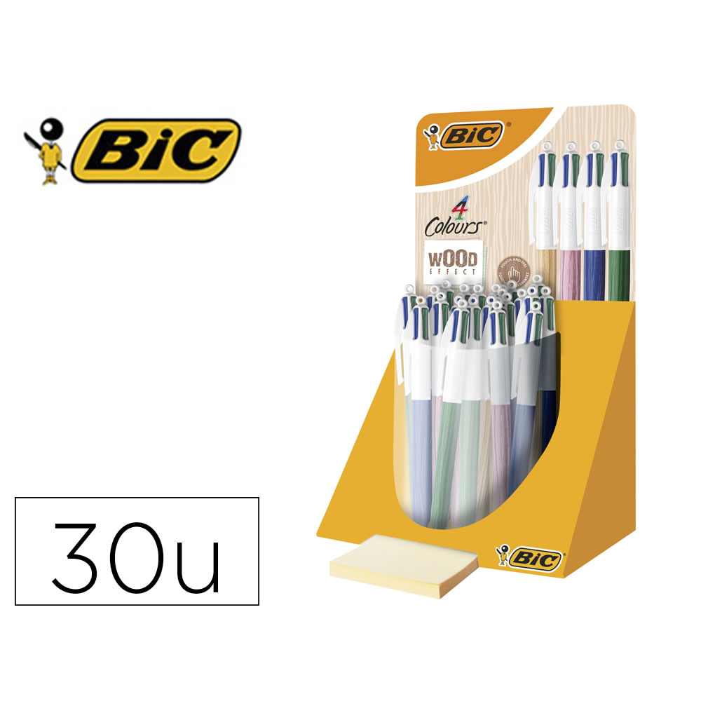 Ref. 9649042 - Bic 4 Colours Decor Expositor de 30 Boligrafos de Bola Retractiles - Punta Media de 1.0mm - Tinta con Base de Aceite - 4 Colores.