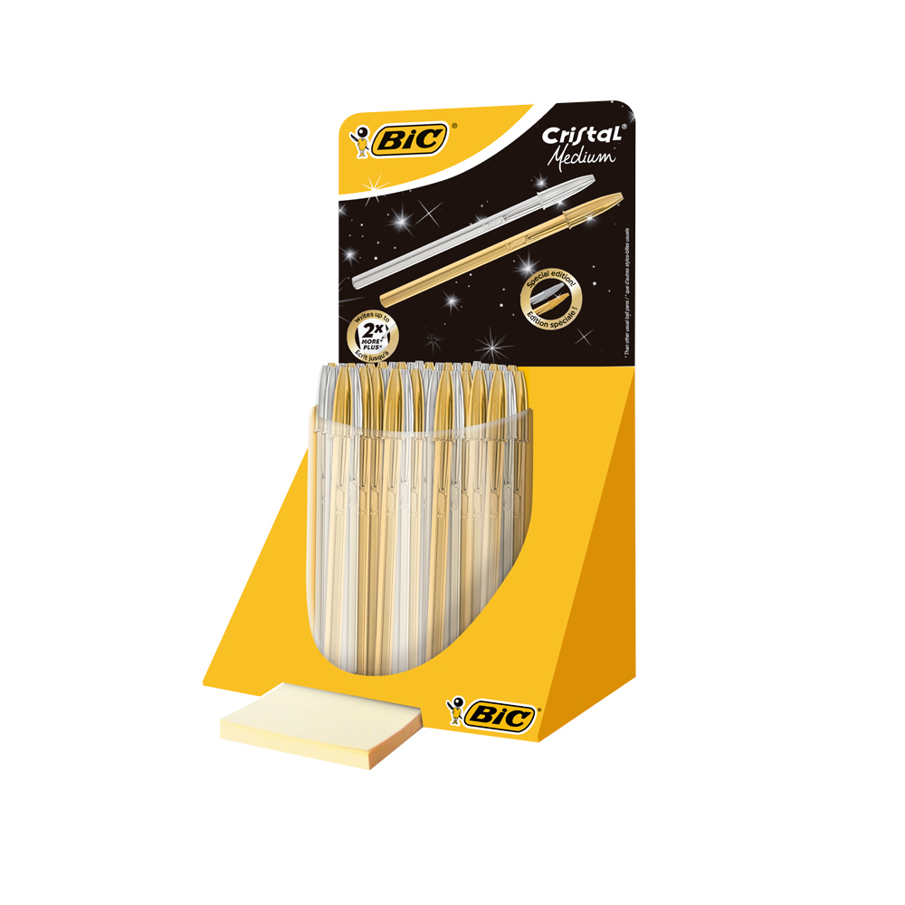 Los BIC Cristal Shine Original están adornados en un tono plateado y dorado con la tinta negro. La tecnología de vanguardia empleada en el diseño y fabricación de la bola de 1,0 mm de este bolígrafo p...