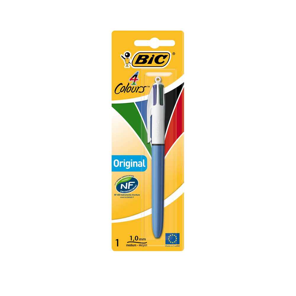 Ref. 802077 - Bic 4 Colours Original Boligrafo de Bola Retractil - Punta Media de 1.0mm - Tinta con Base de Aceite - Cuerpo Azul / Blanco - 4 Colores.