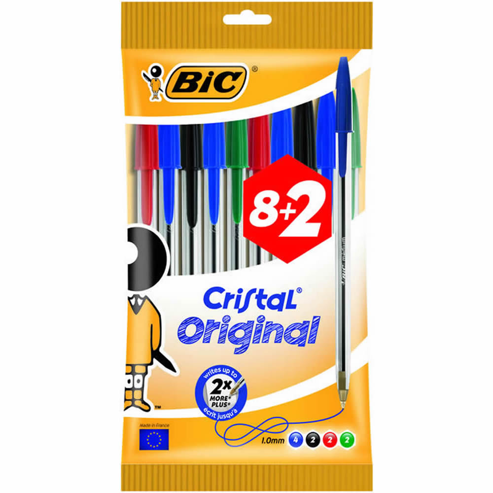 Ref. 830865 - Bic Cristal Original Pack De 10 Boligrafos De Bola - Punta Redonda De 1.0Mm - Trazo 0.4Mm - Tinta Con Base De Aceite - Colores Surtidos.