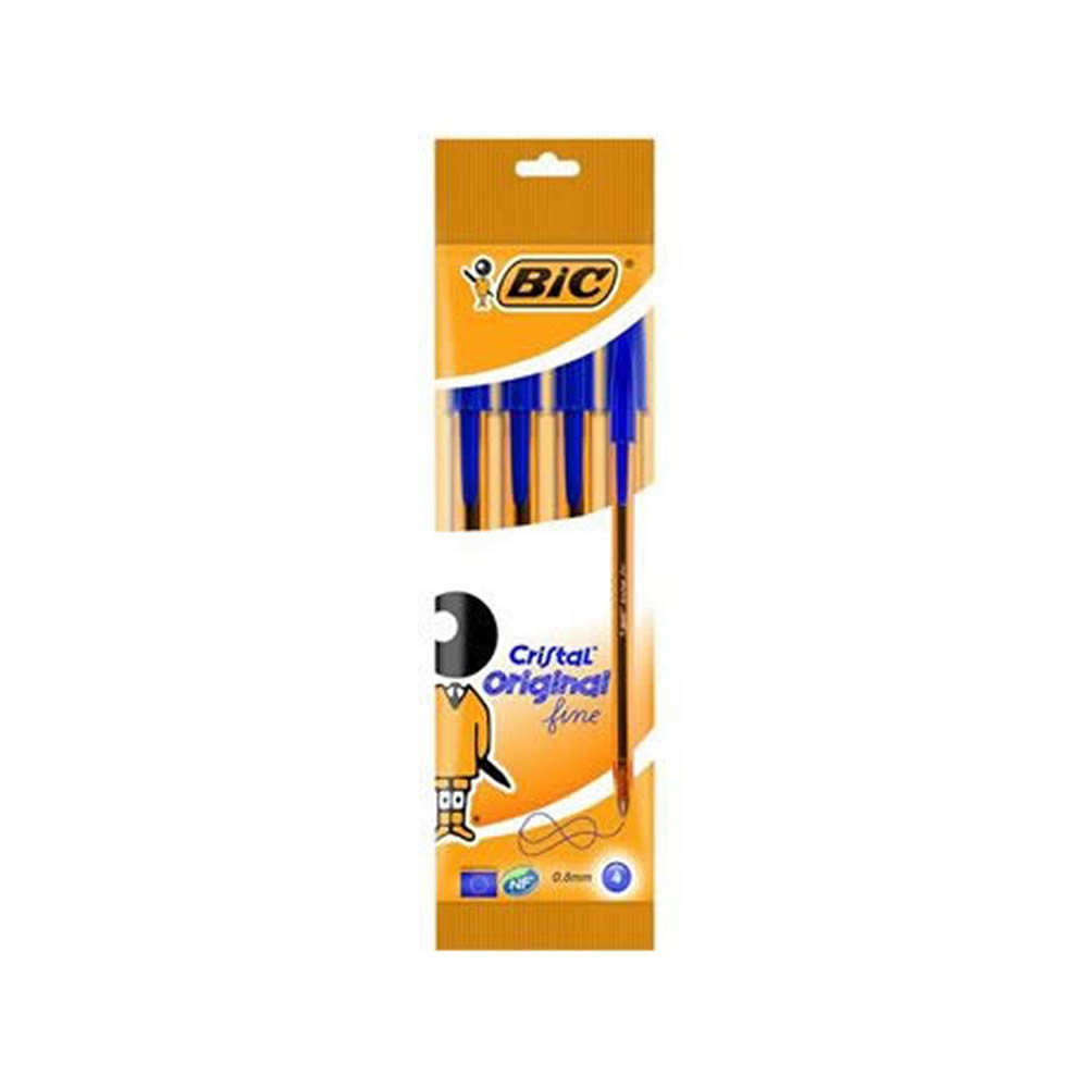 Ref. 872721 - Bic Cristal Original Fine Pack de 4 Boligrafos de Bola - Punta Redonda de 0.8mm - Trazo de 0.3mm - Tinta con Base de Aceite - Color Azul.