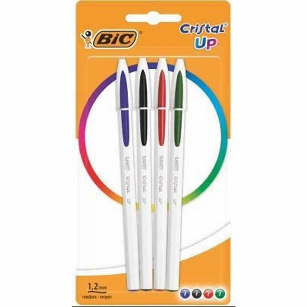 Ref. 949871 - Bic Cristal Up Pack de 4 Boligrafos de Bola - Punta Redonda de 1.2mm - Trazo 0.6mm - Tinta con Base de Aceite - Cuerpo Blanco - Colores Surtidos.