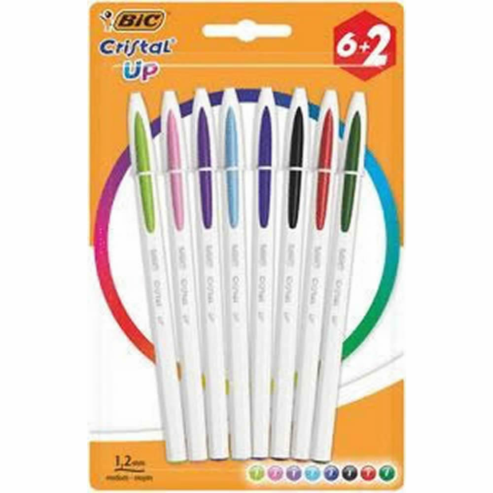 Ref. 949872 - Bic Cristal Up Pack de 8 Boligrafos de Bola - Punta Redonda de 1.2mm - Trazo 0.6mm - Tinta con Base de Aceite - Cuerpo Blanco - Colores Surtidos.