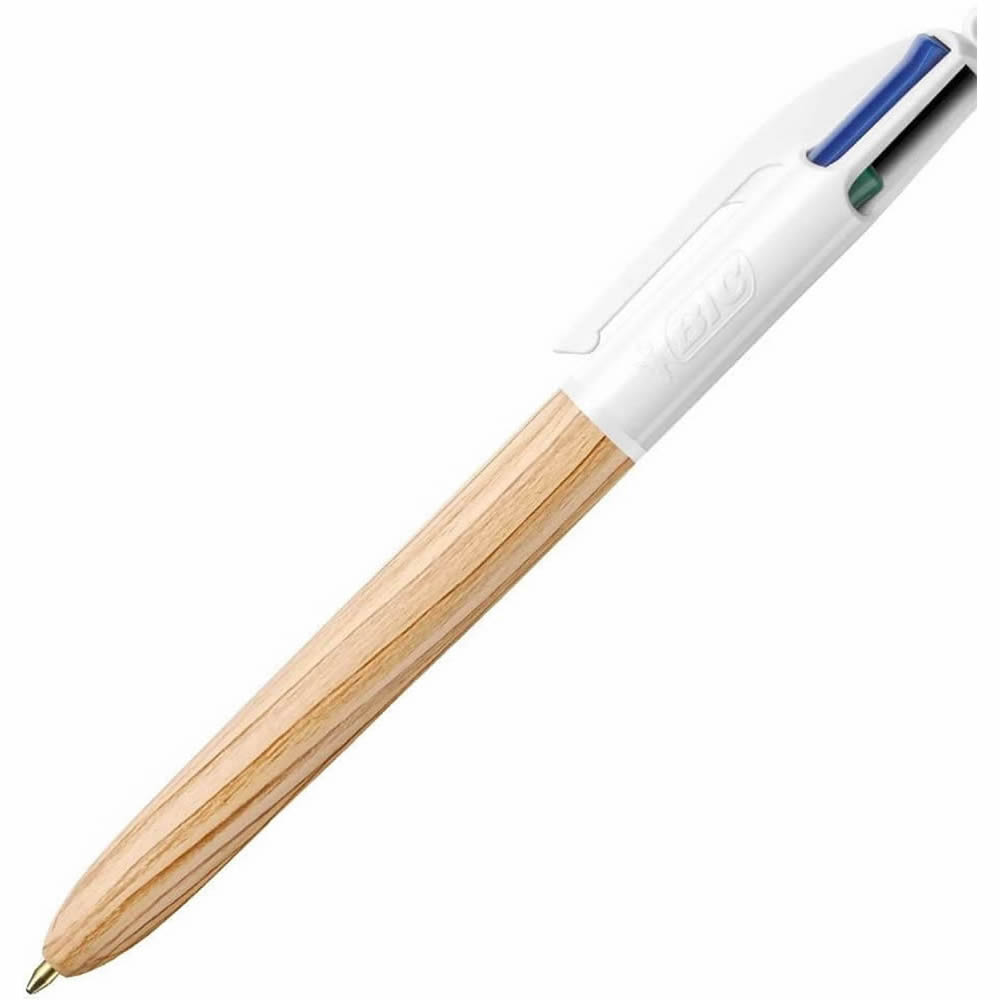 El bolígrafo retráctil BIC® 4 Colours 3+1HB permite elegir entre negro, rojo, azul y portaminas en un solo bolígrafo.