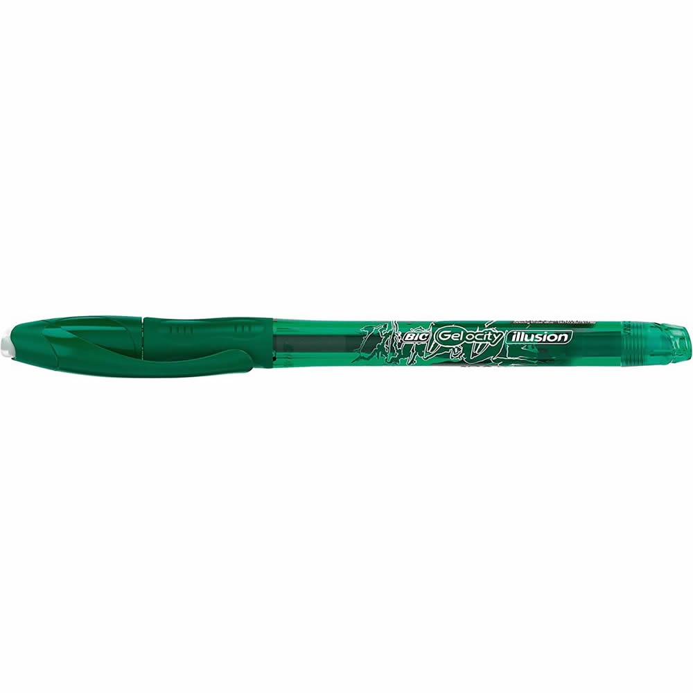 Ref. 943443 - Bic Gel-ocity Illusion Boligrafo de Tinta Gel Borrable - Punta Media de 0.7mm - Recargable - Grip de Goma - Clip de Plastico - Color Verde.