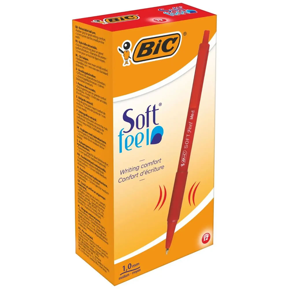 Ref. 837399 - Bic Soft Feel Boligrafo Retractil - Punta Media de 1mm - Cuerpo Translucido con Grip - Color Rojo.