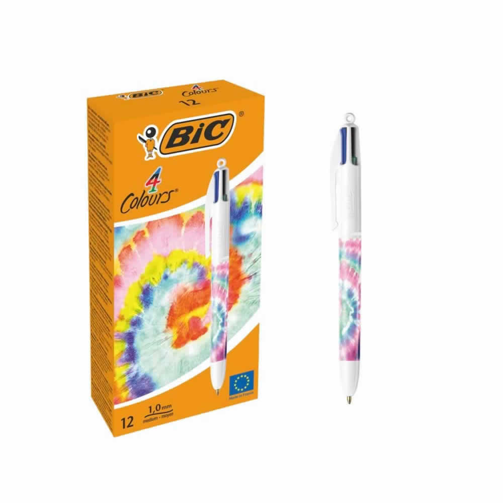 Clásicos bolígrafos BIC 4 Colores con brillantes y modernos diseños tricolor disponibles en 3 diseños diferentes con degradado. Consíguelos todos y exprésate con diseños sofisticados.