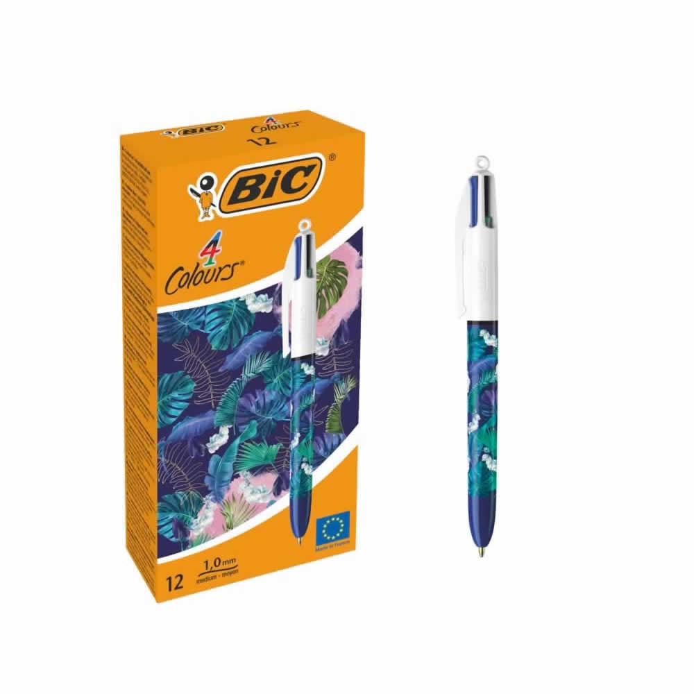 Clásicos bolígrafos BIC 4 Colores con moderno diseño Decors.