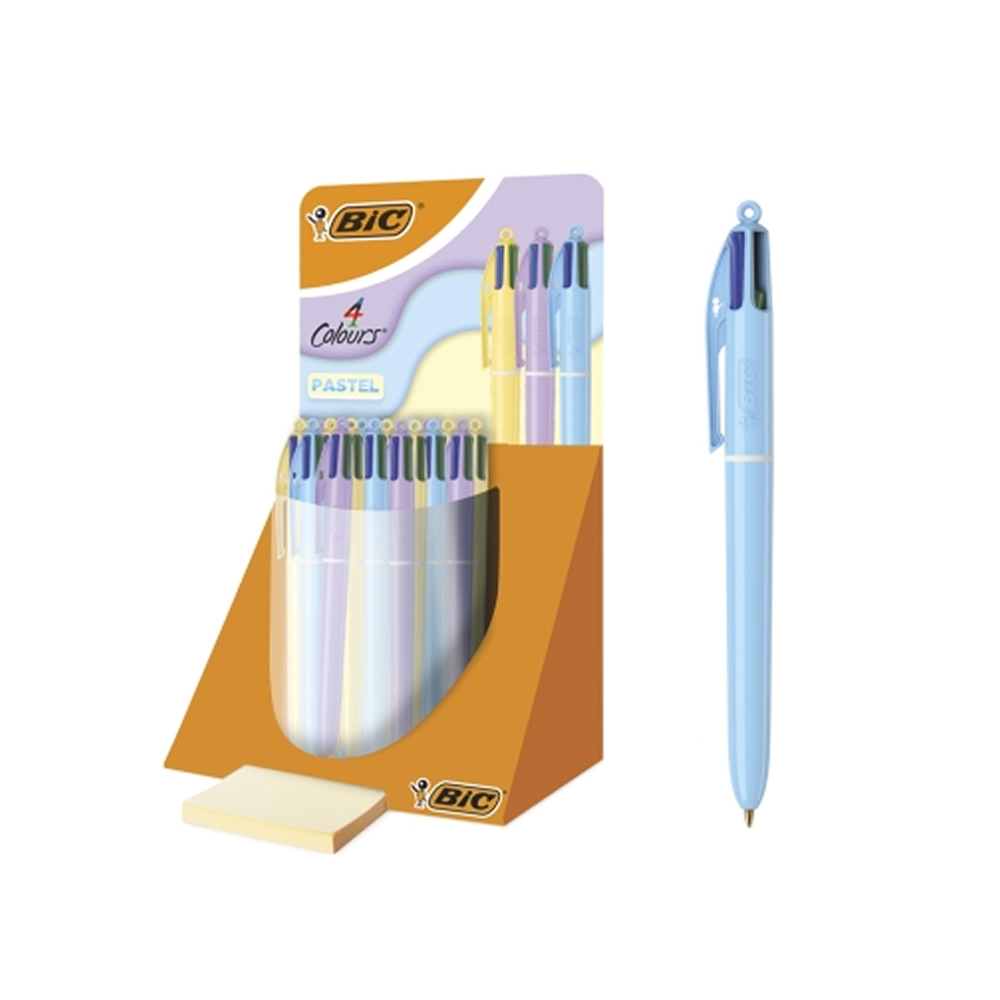 Ref. 517319 - Bic 4 Colours Pastel Expositor con 30 Boligrafos de Bola Retractil - Punta Media de 1.0mm - Tinta con Base de Aceite - Cuerpo en Colores Pastel - 4 Colores.