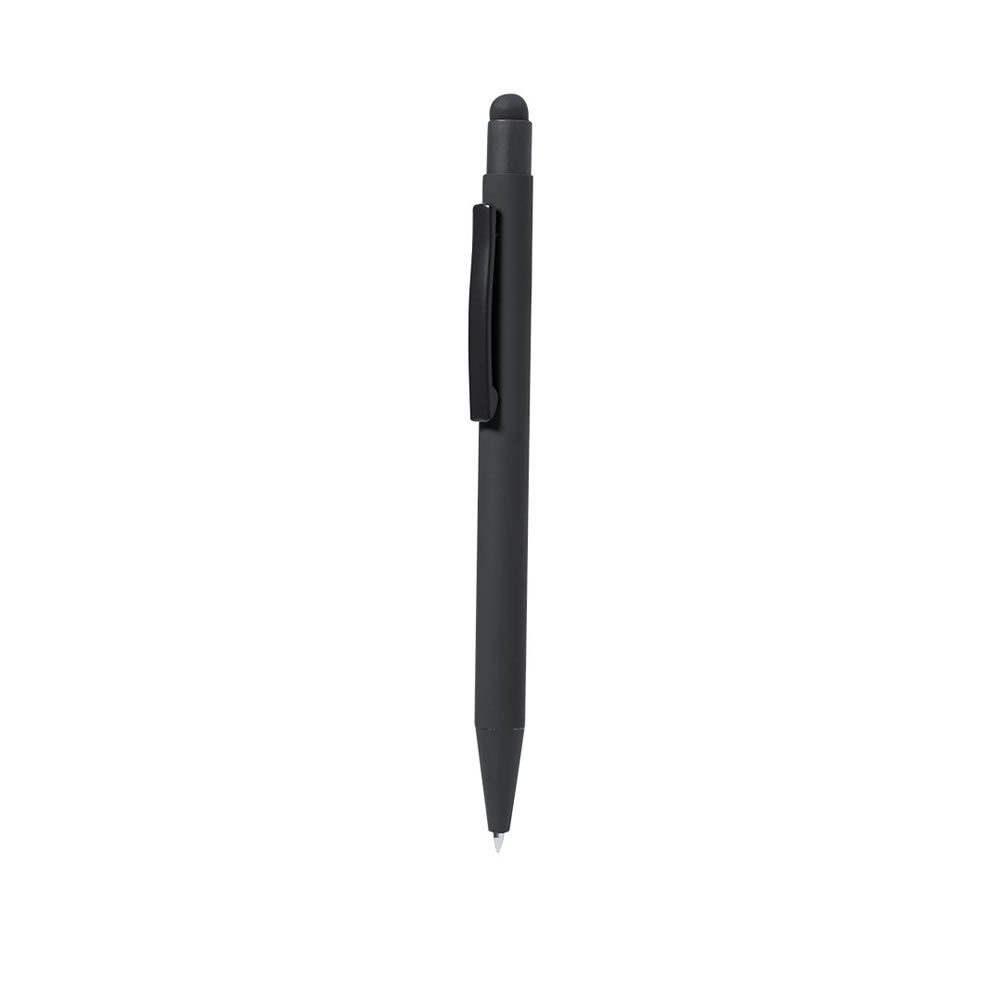 Bolígrafo puntero fabricado en aluminio. De mecanismo pulsador con puntero y clip metálico a juego con el cuerpo. Cuerpo terminación en goma, especialmente diseñado para marcaje en láser. De cartucho ...