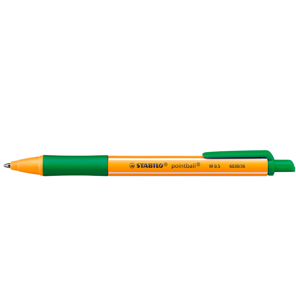 Ref. 6030/36 - Stabilo Pointball Boligrafo Retractil - Punta de 1mm - Tinta con Base de Aceite - Recargable - 79% Plastico Reciclado - Grip Antideslizante - Color Verde.