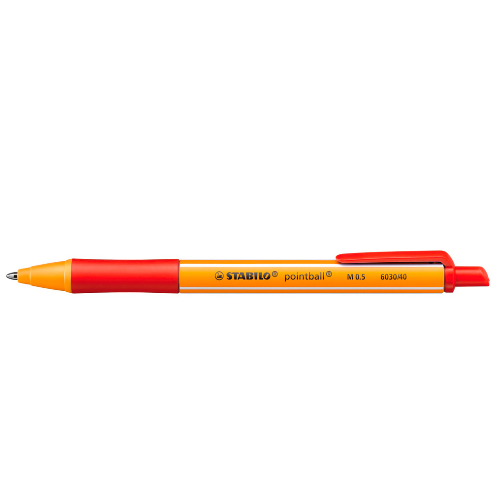 Ref. 6030/40 - Stabilo Pointball Boligrafo Retractil - Punta de 1mm - Tinta con Base de Aceite - Recargable - 79% Plastico Reciclado - Grip Antideslizante - Color Rojo.