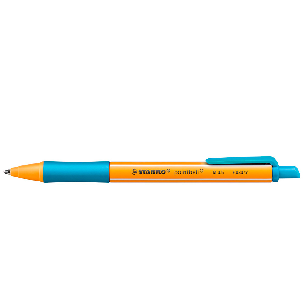 Ref. 6030/51 - Stabilo Pointball Boligrafo Retractil - Punta de 1mm - Tinta con Base de Aceite - Recargable - 79% Plastico Reciclado - Grip Antideslizante - Color Turquesa.