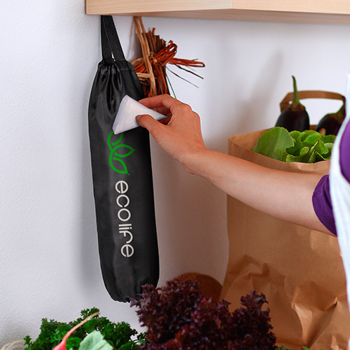 Bolsa reciclaje doxen color verde. Composicion: Poliéster 210D. Codigo de impresión: E(1). Medidas: 0 x 39 x 0 cm. Diametro: 14 cm. Bolsa de reciclaje para guardar bolsas de plástico. En suave poliést...