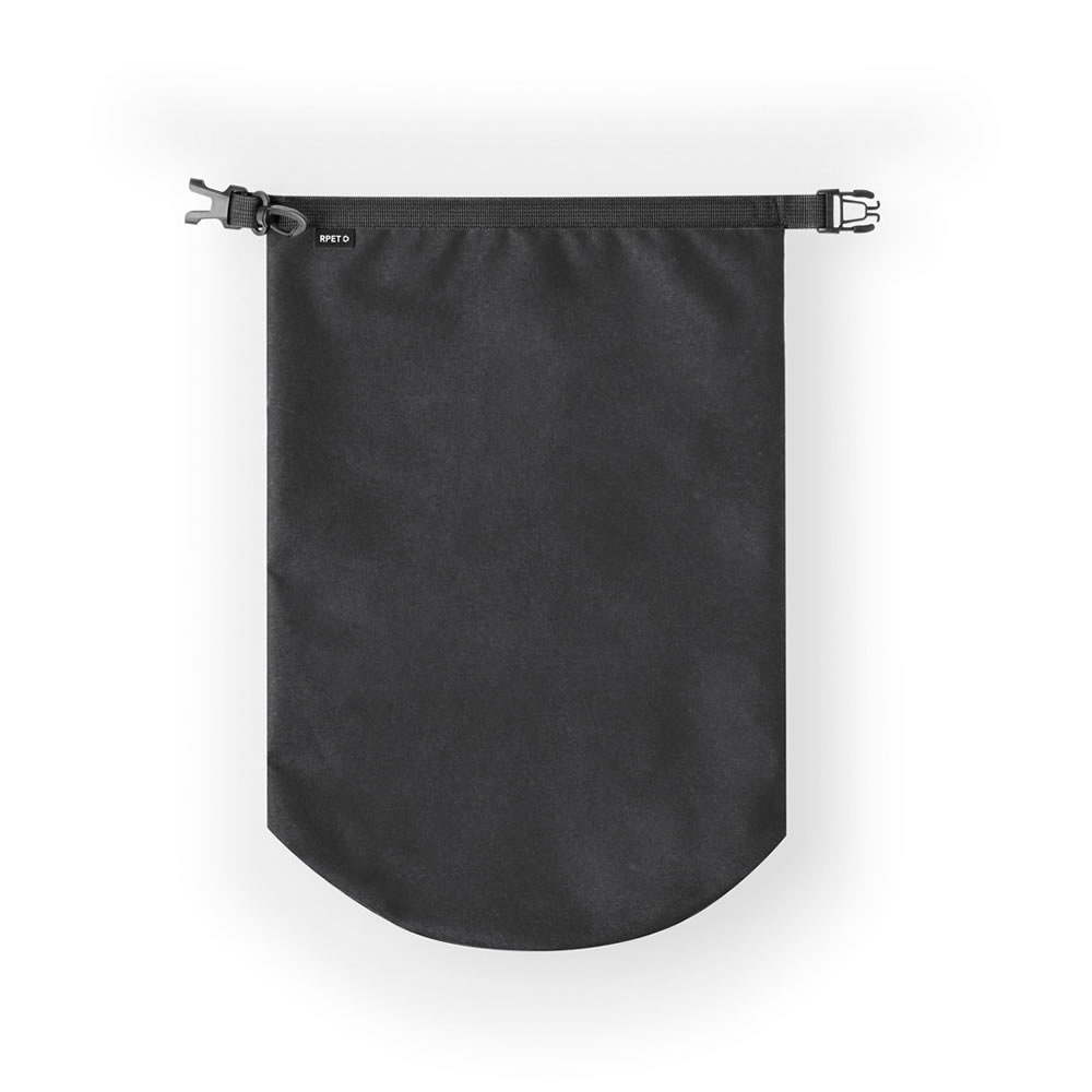 Bolsa impermeable de 10L de capacidad, fabricada en resistente poliéster 300D RPET. Cierre de seguridad, asa con hebilla de ajuste y mosquetón incluido. Etiqueta distintiva de RPET en el cierre. Dispo...