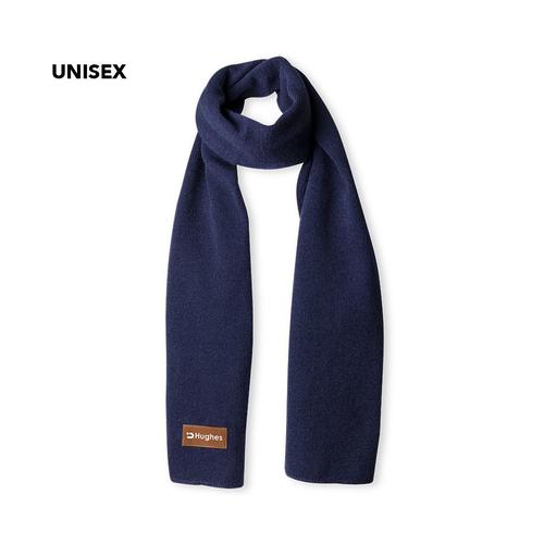 Bufanda unisex fabricada en material acrílico elástico. Con parche en polipiel cosido para marcaje y disponible en variada gama de colores. Peso: 150 grs. Codigo de impresión: G(1),N(8),P. Medidas: 16...