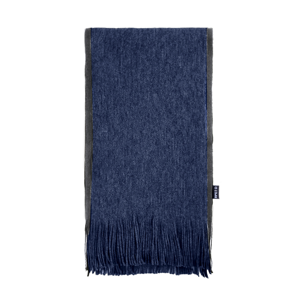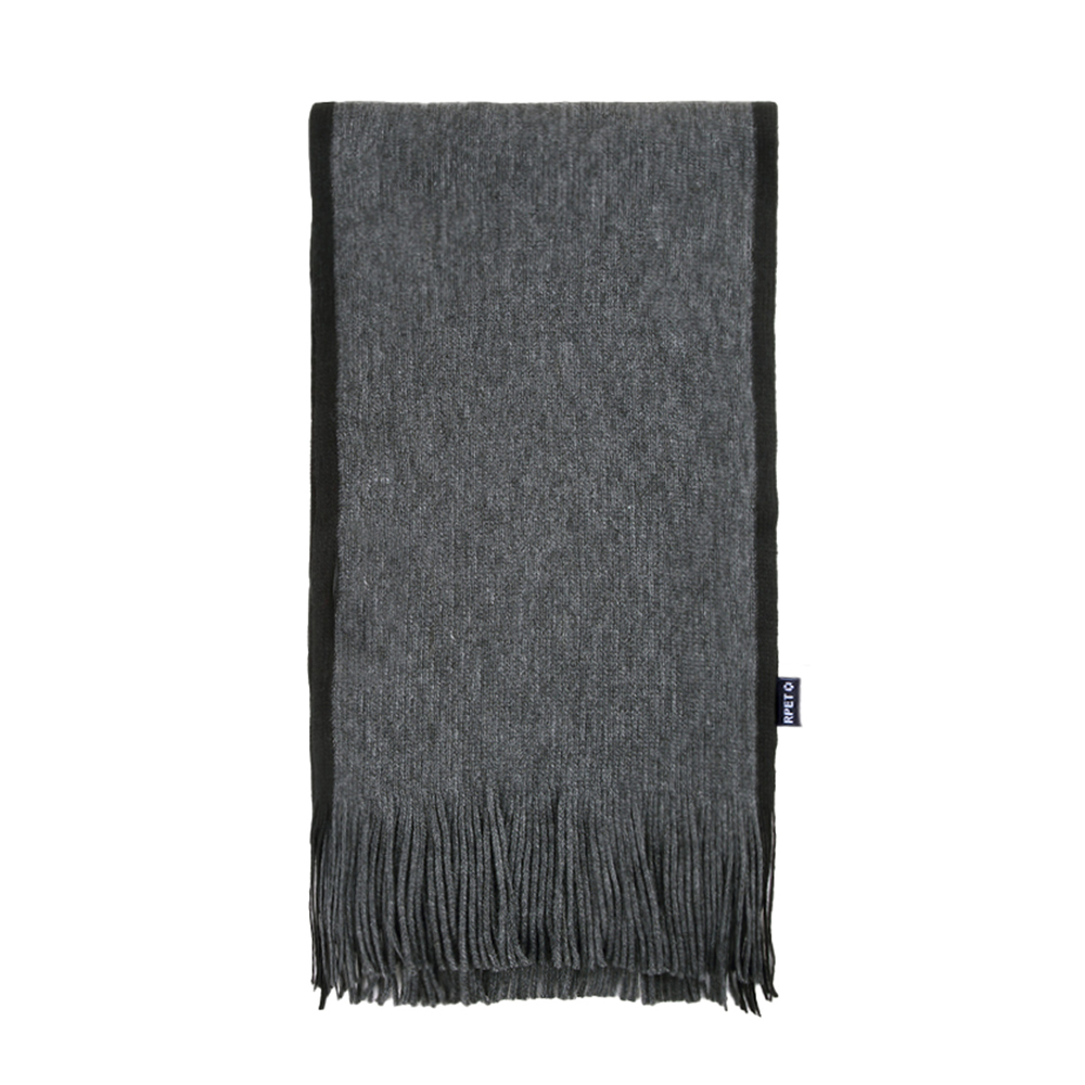 Suave y cálida bufanda confeccionada en cálido poliéster RPET. Fabricada en elegantes colores bitono con bordes en distinto color, terminación en flecos. Con logotipo RPET en etiqueta. Presentada indi...