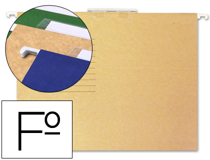 Carpetas colgantes Kraft natural 230 gr. Acceso vertical. Lomo V. Visor corto rígido DIN A4 (Caja 50 unid.) . Gama mejorada de carpetas colgantes.¡Ahora 10 veces más resistentes! A4, caja de 50. ¡Ahor...