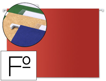 Ref. ES90316 - Carpetas colgantes Kraft color. Acceso vertical. Lomo V. Visor corto flexible. DIN A4 (Caja 25) Color rojo.