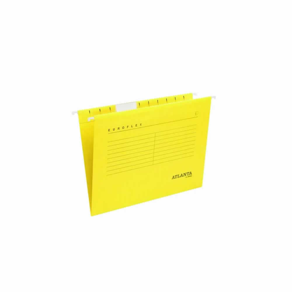 Carpetas colgantes Kraft color. Acceso vertical. Lomo V. Visor corto flexible. DIN A4 (Caja 25) Color amarillo. Gama mejorada de carpetas colgantes en colores brillantes.¡Ahora 10 veces más resistente...