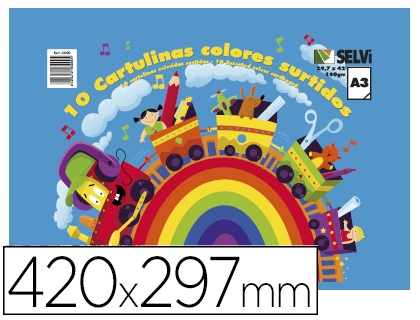 Ref. 16238 - Fabrisa Pack de 50 Cartulinas 180 g / m² - Tamaño A3 - Colores Fuertes Surtidos.