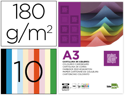 Cartulina de 180 g / m² tamaño A3. Cada pack contiene 100 cartulinas, tintadas en masa, ofreciendo así unos colores más homogéneos y nítidos. Ideal para su uso escolar, todo tipo de manualidades, cubier...