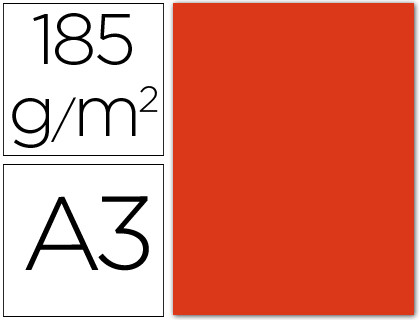 Paquete de 50 hojas A3 de cartulina color Carmin de 180 gr. (escarlata 31)