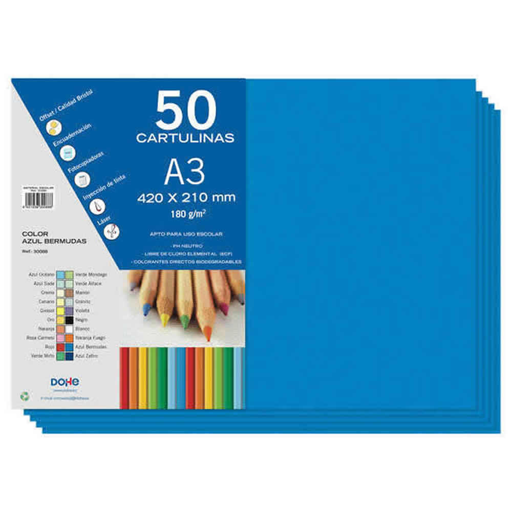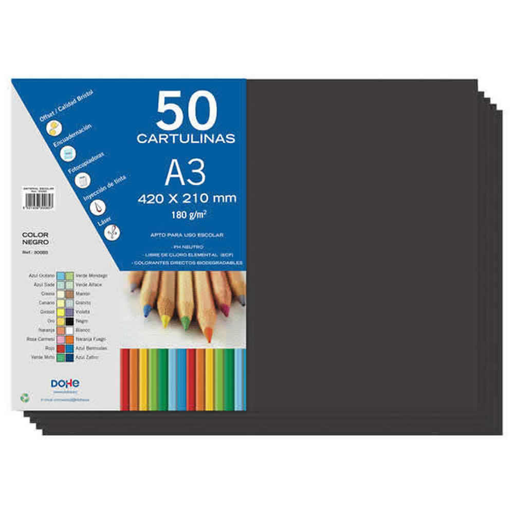 Ref. DO30075 - Dohe Cartulinas A3 - 50 Hojas - Ideal para Manualidades y Proyectos Escolares.