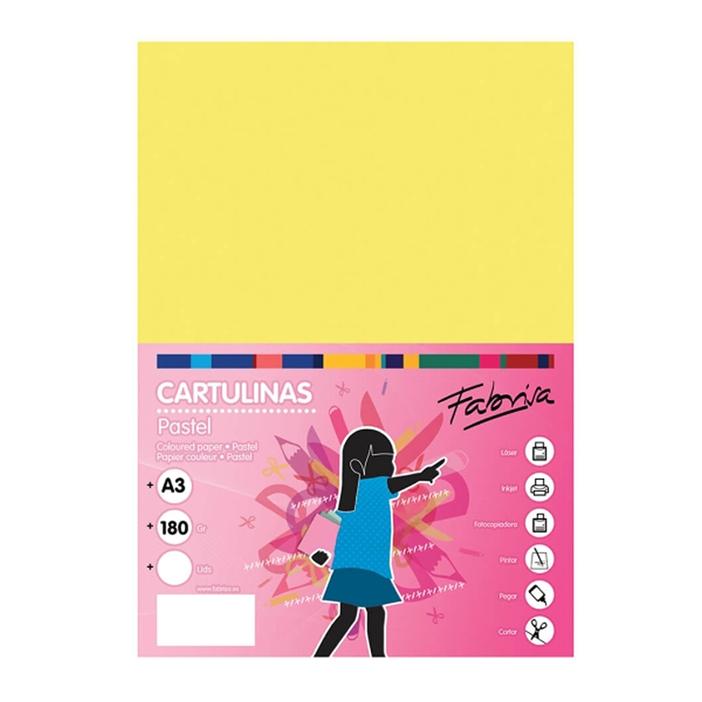 Ref. 18103 - Fabrisa Pack de 25 Cartulinas 180 g / m² - Tamaño A3 - Color Amarillo.