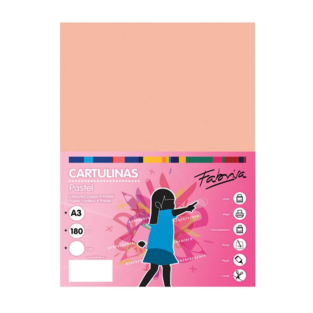 Ref. 18106 - Fabrisa Pack de 25 Cartulinas 180 g / m² - Tamaño A3 - Color Salmon.
