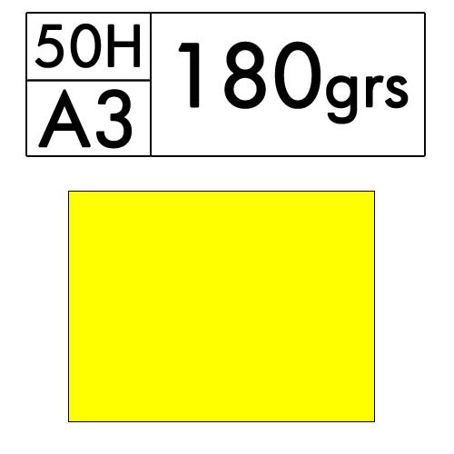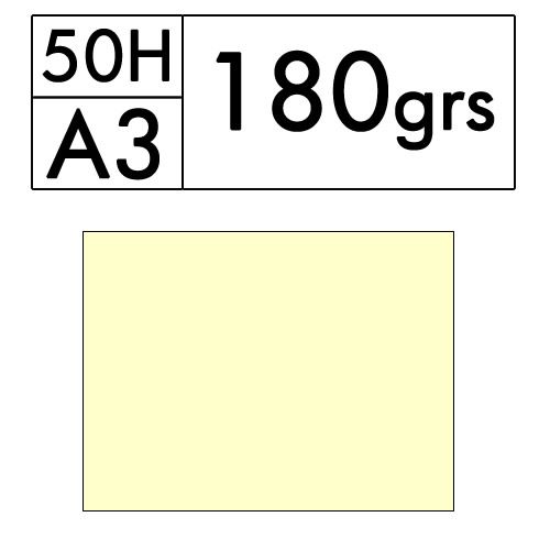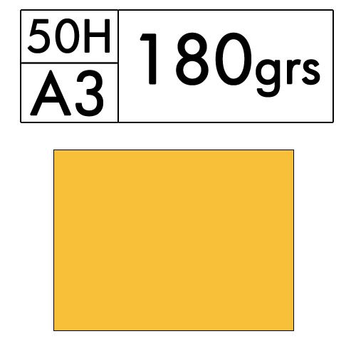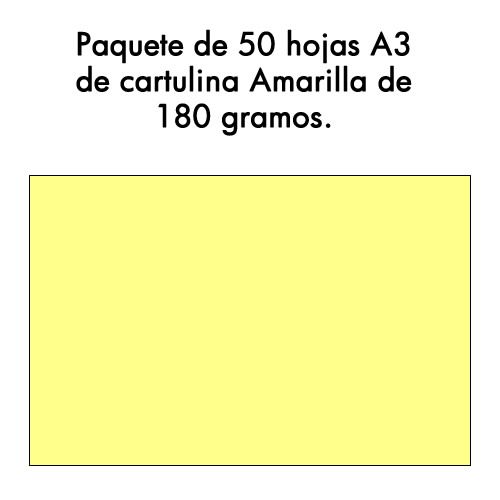 Paquete de 50 hojas A3 de cartulina color Amarillo de 180 gr. (cromo 24)