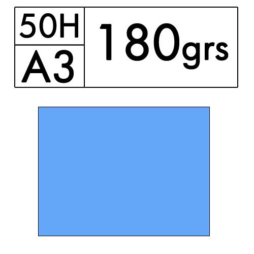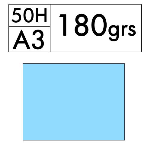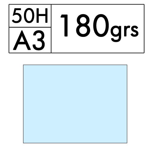 Paquete de 50 hojas A3 de cartulina color Azul Palido de 180 gr. (azul 09)
