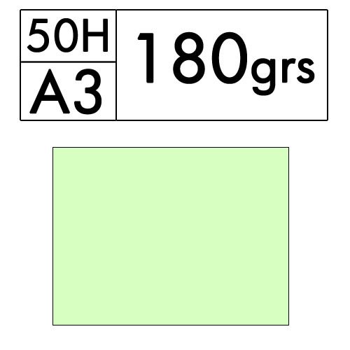 Paquete de 50 hojas A3 de cartulina color Verde Palido de 180 gr. (verde 18)