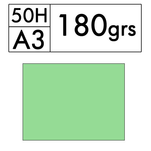 Paquete de 50 hojas A3 de cartulina color Verde Hierba de 180 gr. (gespa 20)