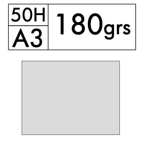Paquete de 50 hojas A3 de cartulina color Gris Claro de 180 gr. (gris perla 36)