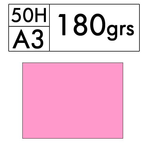 Paquete de 50 hojas A3 de cartulina color Rosa de 180 gr. (coral 08)