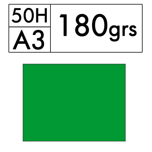 Paquete de 50 hojas A3 de cartulina color Verde Intenso de 180 gr. (hierba 13)