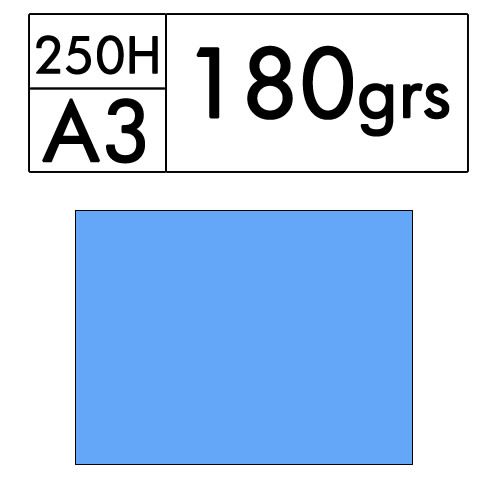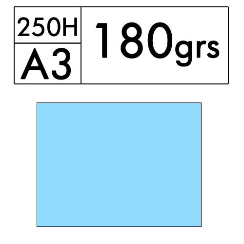 Paquete de 250 hojas A3 de cartulina color azul palido de 180 gr. (azul 09)