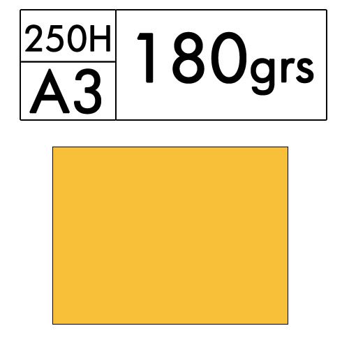 Paquete de 250 hojas A3 de cartulina color amarillo de 180 gr. (cromo 24)