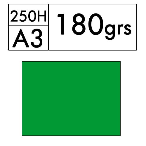 Paquete de 250 hojas A3 de cartulina color verde de 180 gr. (nilo 12)