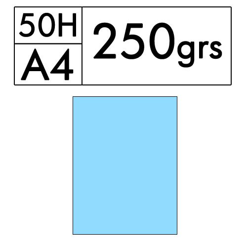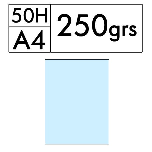 Paquete de 250 hojas A4 de cartulina color azul palido de 250 gr. (azul 09)