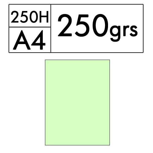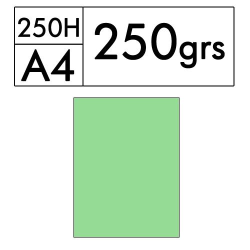 Paquete de 250 hojas A4 de cartulina color verde palido de 250 gr. (verde 18)