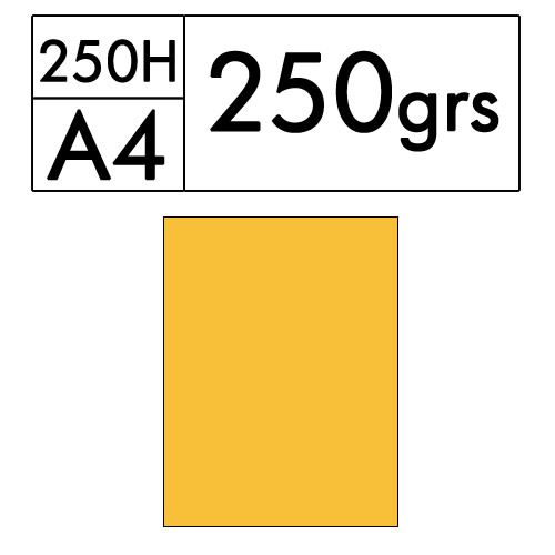 Paquete de 250 hojas A4 de cartulina color amarillo intenso de 250 gr. (yema 38)